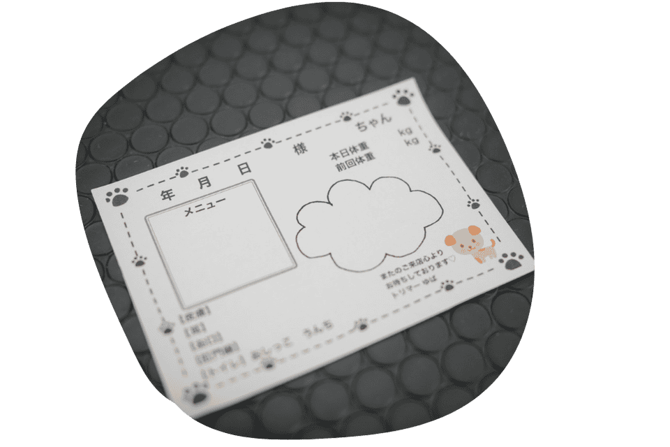 わんちゃんはお迎えまでゆっくり過ごします。トリミング時で気がついたことなどはご報告させていただきます。